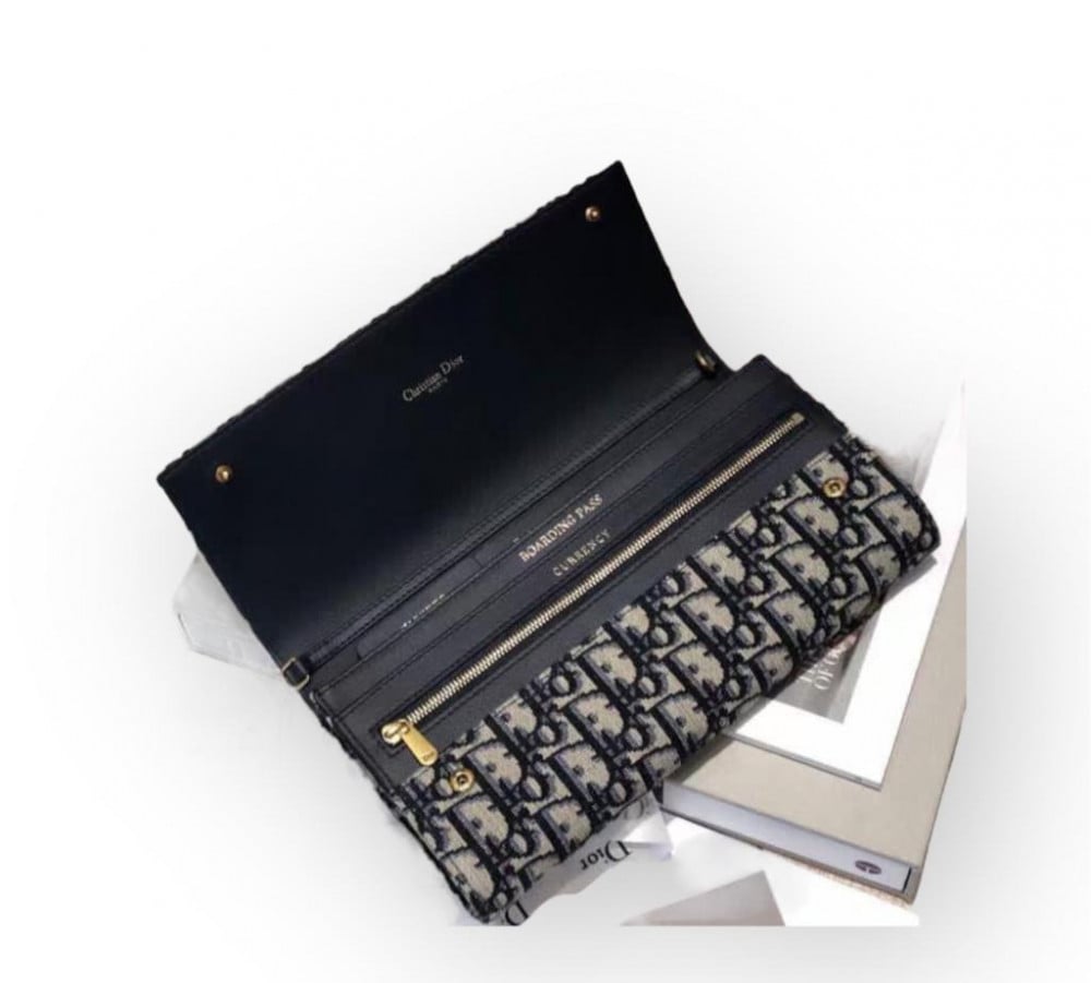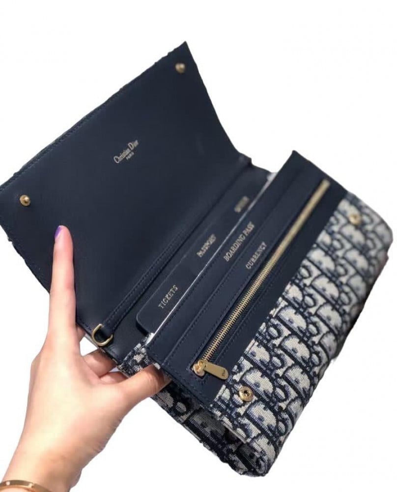 دايور كروس & كلتش واليت جاكار ازرق Dior S5401 Clutch Wallets Blue Daior Oblique Jacquard Canvas
